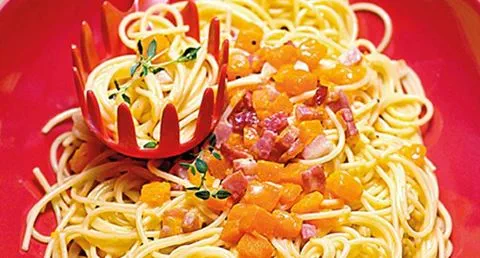 Esparguete com abóbora à “Carbonara”