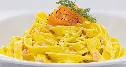 Tagliatelle com salmão fumado