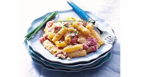 Massa com requeijão e salsichas frescas