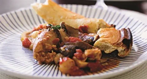 Azevias de atum com tomate e azeitonas
