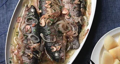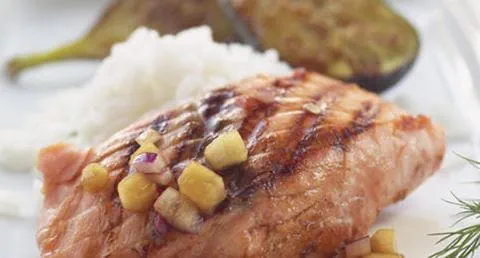 Truta Salmonada Braseada com Figos e Molho de Pepino