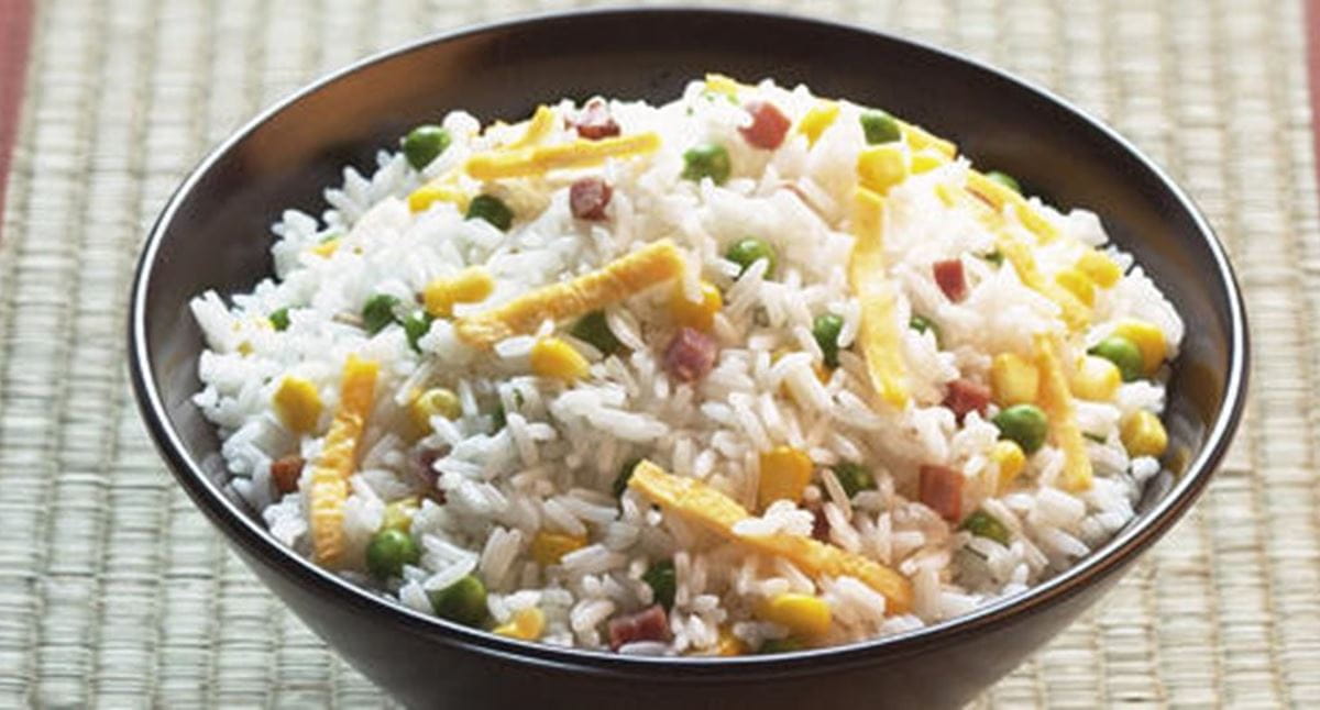 - Numa taça misture o arroz com as ervilhas, o milho, o bacon e o ovo. Deite num pirex untado com Vaqueiro e por cima espalhe nozinhas de Vaqueiro. Leve a aquecer em forno quente.