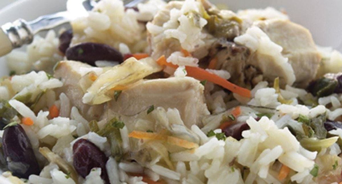 Arroz de coelho com lombarda e feijão