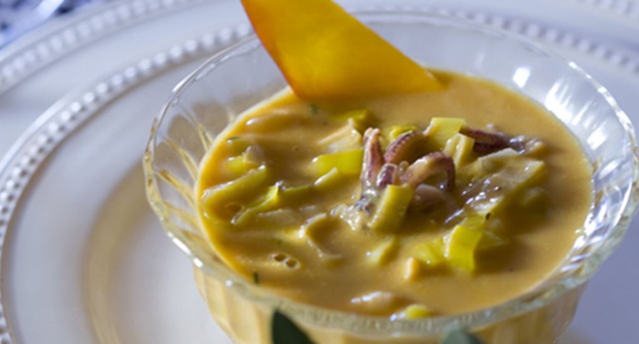 Aveludado de mariscos com molho de manga