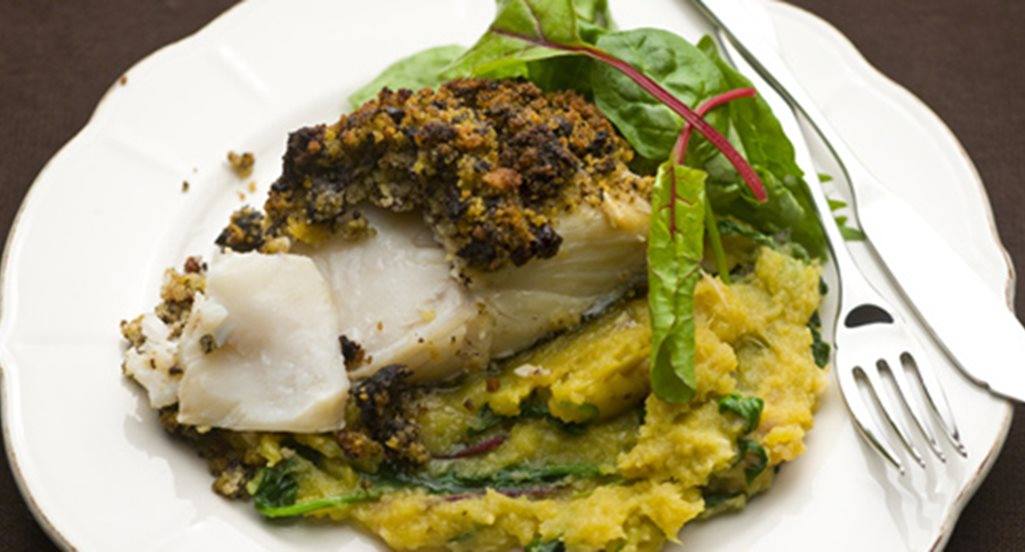 - Depois de cozidas, escorra as batatas, tire-lhes a pele e esmague-as com um esmagador. Junte aos espinafres, e misture bem. Perfume com pimenta moída na altura e rectifique o sal se for necessário. Sirva a acompanhar os lombos de bacalhau.