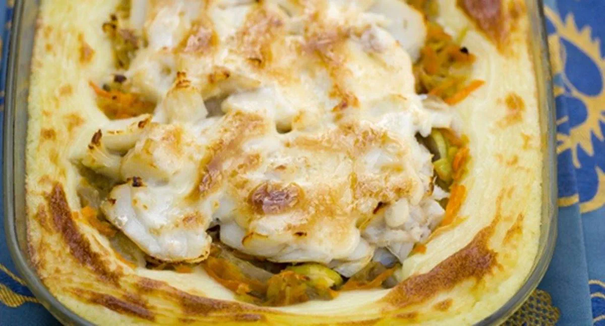 - Ligue o forno e regule-o para os 220 °C.Cubra o bacalhau com leite, leve ao lume e deixe ferver durante 10 minutos.Entretanto, descasque e corte as cebolas e os dentes de alho em rodelas finas e leve a refogar com a Vaqueirolíquida, sobre lume brando.Enquanto a cebola está ao lume, corte o alho francês em rodelas finas, lave em água corrente e escorra bem e junte à cebola.Pele e rale as cenouras em fios, adicione aos restantes legumes. Tape e deixe estufar enquanto prepara os cogumelos.Lave, enxugue e corte os cogumelos em pedaços, junte aos legumes, aumente um pouco o lume e deixe cozinhar destapado durante uns 5 minutos. Escorra o bacalhau e aproveite o leite para preparar o puré de batata. Prepare o puré enquanto separa os lombos de bacalhau em lascas grandes.Unte um tabuleiro que possa ir ao forno e à mesa com Vaqueiro e disponha o puré toda a volta, deixando espaço ao centro para colocar aí os legumes e sobre estes as lascas de bacalhau.Espalhe uma camada de maionese Hellmann's sobre o bacalhau e leve a gratinar no forno até a superfície estar bem dourada.