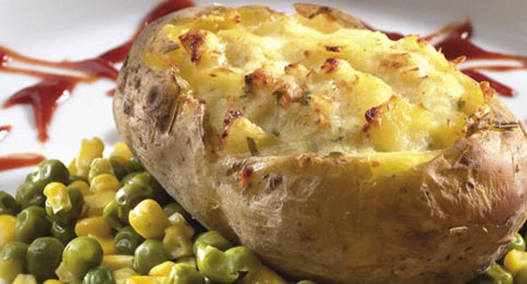 - Corte uma "tampa" às batatas e escave o seu interior com a ajuda de uma colher pequena. Misture a polpa da batata com o peixe e adicione as natas e a salsa picada. Tempere com pimenta e deixe ferver mais um pouco, batendo com uma colher de pau até o peixe e a polpa das batatas estarem bem desfeitos. Distribua este preparado pelas batatas escavadas, coloque-as sobre um tabuleiro previamente untado com Vaqueiro Líquida e leve a tostar em forno quente.
