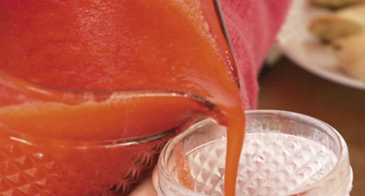 - Lave os morangos, tire-lhes os pés e deite no copo liquidificador. Adicione a polpa de maracujá e o sumo das laranjas. Descasque a maçã, corte-a em pedaços e junte aos frutos. Adicione a água bem fresca e triture até os frutos estarem bem desfeitos. Junte açúcar a gosto e mais um pouco de água se achar o sumo muito espesso. Sirva bem fresco.