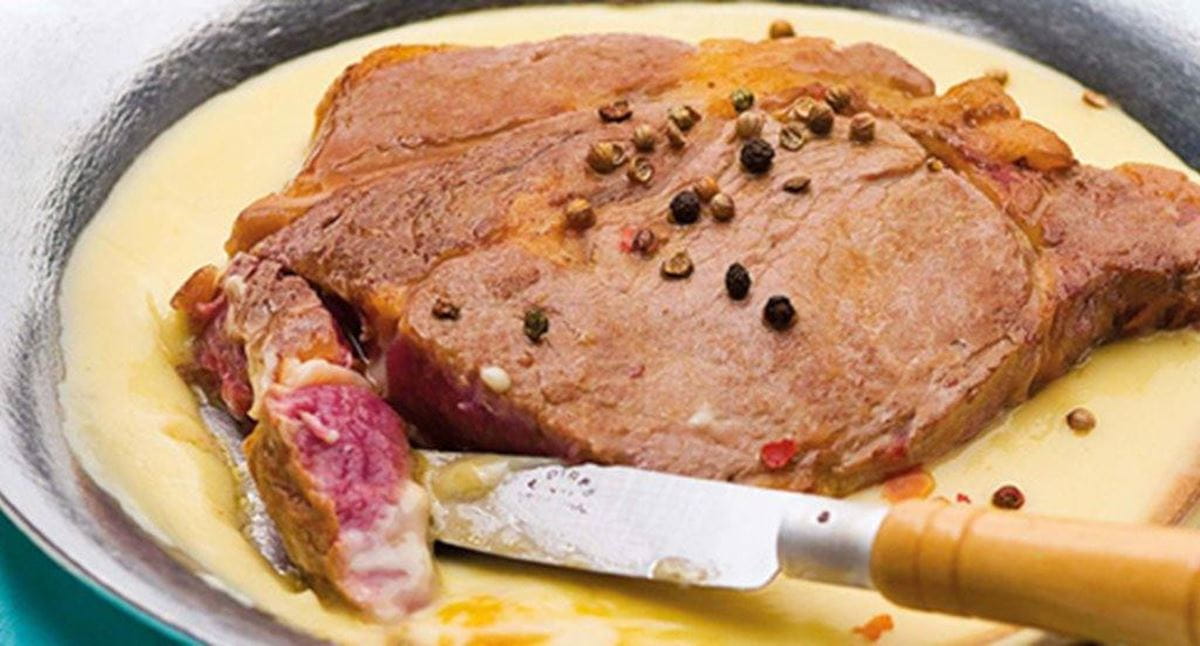 Bifes da vazia com molho de queijo e pimenta 5 bagas