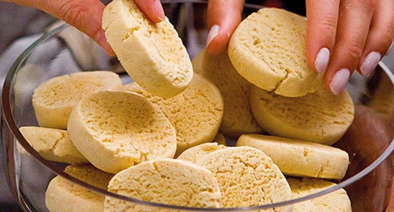 - Mude a massa para a bancada de trabalho já polvilhada com farinha e molde num rolinho com cerca de 4 cm de diâmetro. Corte em fatias com cerca de 1 cm de espessura e coloque-as com a parte cortada virada para cima, sobre tabuleiros de forno forrados com papel vegetal. Leve ao forno durante cerca de 15 minutos.
