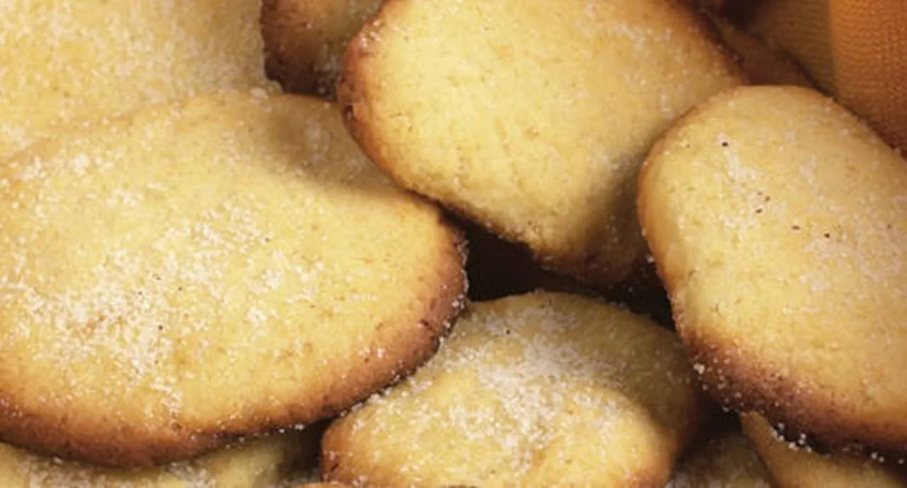 - Molde em bola e deixe descansar um pouco. Tenda os biscoitos em bolinhas, coloque-os sobre um tabuleiro untado e pincele com a restante gema desfeita. Achate um pouco fazendo pressão com os dentes de um garfo e coza em forno moderado durante cerca de 15 minutos. Retire do tabuleiro com a ajuda de uma espátula e polvilhe-os enquanto quentes com açúcar. Depois de frios, guarde-os em caixas de lata.