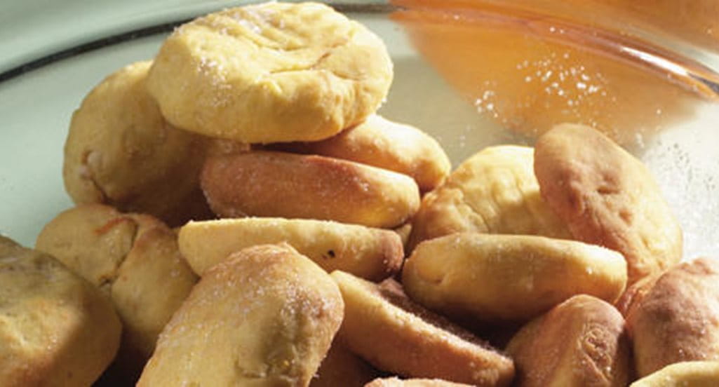 Passe as bolachinhas enquanto quentes por açúcar e depois de terem arrefecido guarde-as em caixas ou frascos que vedem hermeticamente.