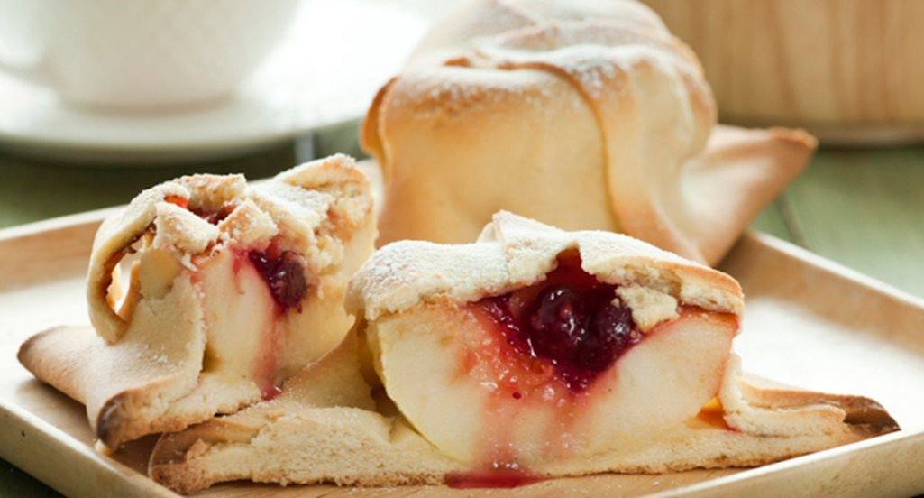 - Preencha com passas ou com geleia. Dobre os cantos da massa e pressione de modo a ficarem bem fechados.