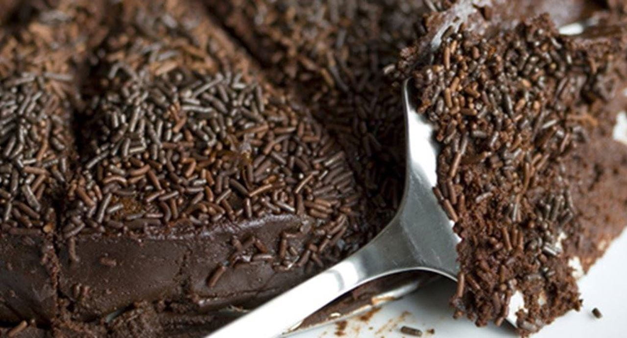 - Retire do forno e cubra a superfície do bolo com chocolate granulado. Deixe arrefecer completamente, retire o aro da forma e coloque o bolo sobre o prato de serviço.