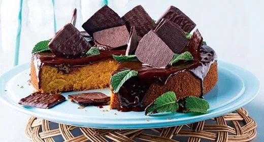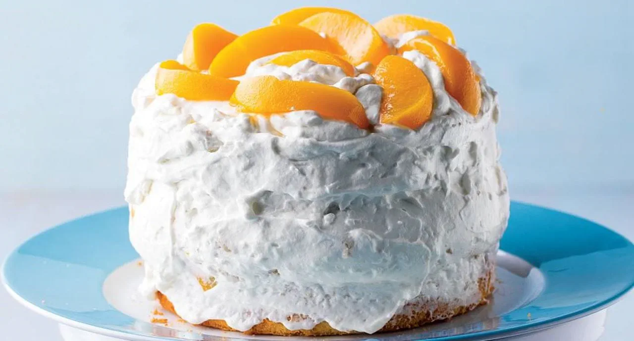 - Pique um dos bolos com um palito e regue-o lentamente com parte da calda dos pêssegos. Por cima espalhe os pedacinhos de pêssego e parte das natas preparadas. Cubra com o outro bolo, pique-o com um palito e regue lentamente com a restante calda. Enfeite com as restantes natas e reserve no frigorífico até à altura de servir.