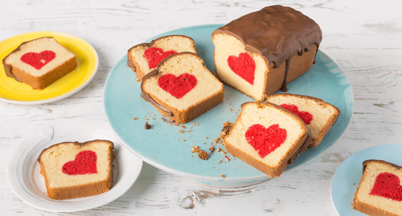 - 6.Quando o bolo arrefecer corte o bolo de fatias grossas e depois, com o cortador em forma de coração, corte as fatias em forma de coração.