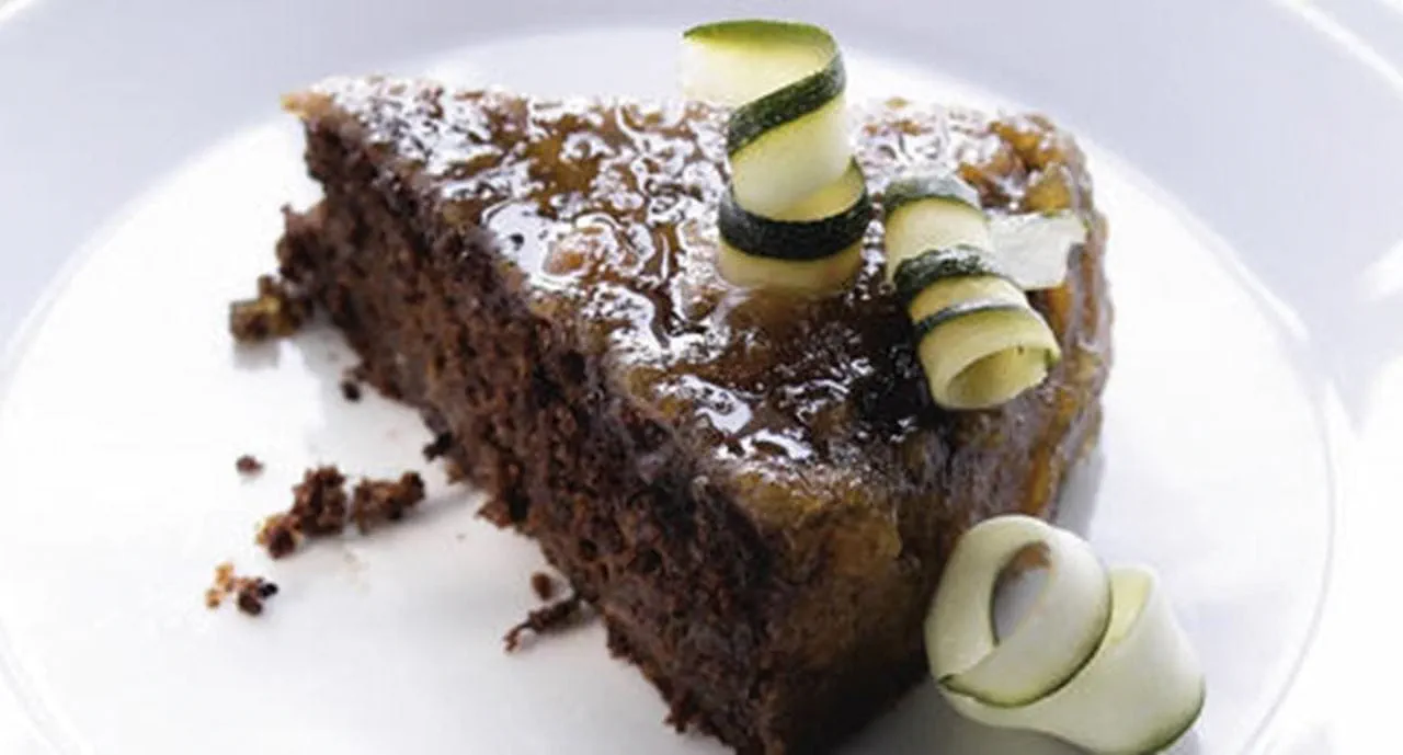 - Peneire a farinha com o fermento, a canela e o cacau e misture no preparado anterior. Descasque e rale a courgette, no ralador ou na picadora e faça o mesmo ao chocolate negro. Incorpore ambos na massa do bolo e deite tudo numa forma redonda previamente untada e polvilhada.