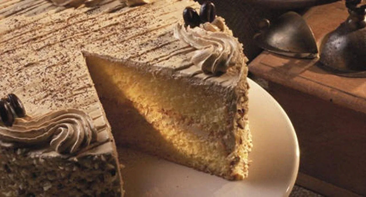 - Desenforme os bolos e deixe arrefecer sobre uma rede. Quando estiverem completamente frios corte cada bolo ao meio no sentido horizontal. Borrife cada placa de bolo com o licor de café, barre com uma camada do creme preparado e sobreponha as placas. Barre toda a superfície do bolo com o restante creme e, com um garfo desenhe umas ondas. Pique grosseiramente as avelãs e distribua-as pelas paredes laterais do bolo.