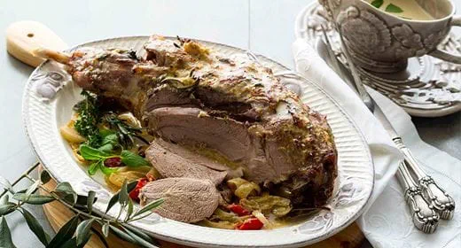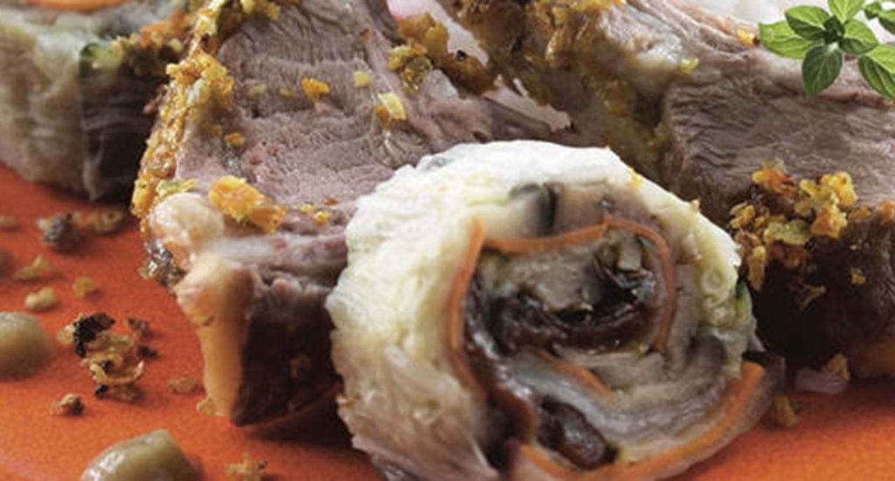Sirva as costeletas de borrego com o rolo de legumes, ambos cortados em fatias, com o molho. Acompanhe também com arroz solto.