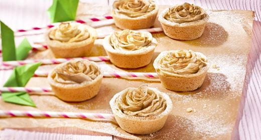 - 8. Entretanto corte a Vaqueiro Sabor a Manteiga em pedaços para dentro de uma frigideira antiaderente, junte o açúcar e leve ao lume mexendo de vez em quando até a mistura começar a ficar cor de caramelo. Adicione cuidadosamente as natas e deixe ferver suavemente, mexendo sempre, durante 3 a 4 minutos. Retire do lume e deixe arrefecer um pouco. Pique grosseiramente os amendoins.