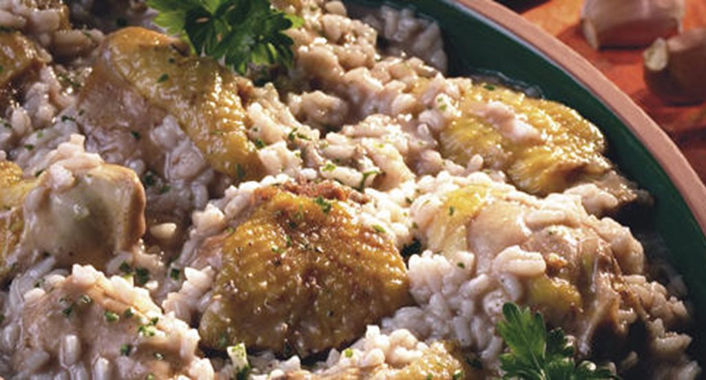 - Aloure as cebolas picadas e os alhos esmagados no azeite. Junte a galinha, a salsa e a carqueja, atados, e cubra com água quente. Tape e deixe cozer suavemente até a galinha estar tenra. Acrescente mais água (de forma a perfazer cerca de 3 vezes o volume de arroz) e, assim que levantar fervura, introduza o arroz. Deixe cozer cerca de 13 minutos. Rectifique o sal e pimenta e adicione o sangue com o vinagre. Mexa e deixe levantar fervura. Sirva imediatamente, no próprio tacho.