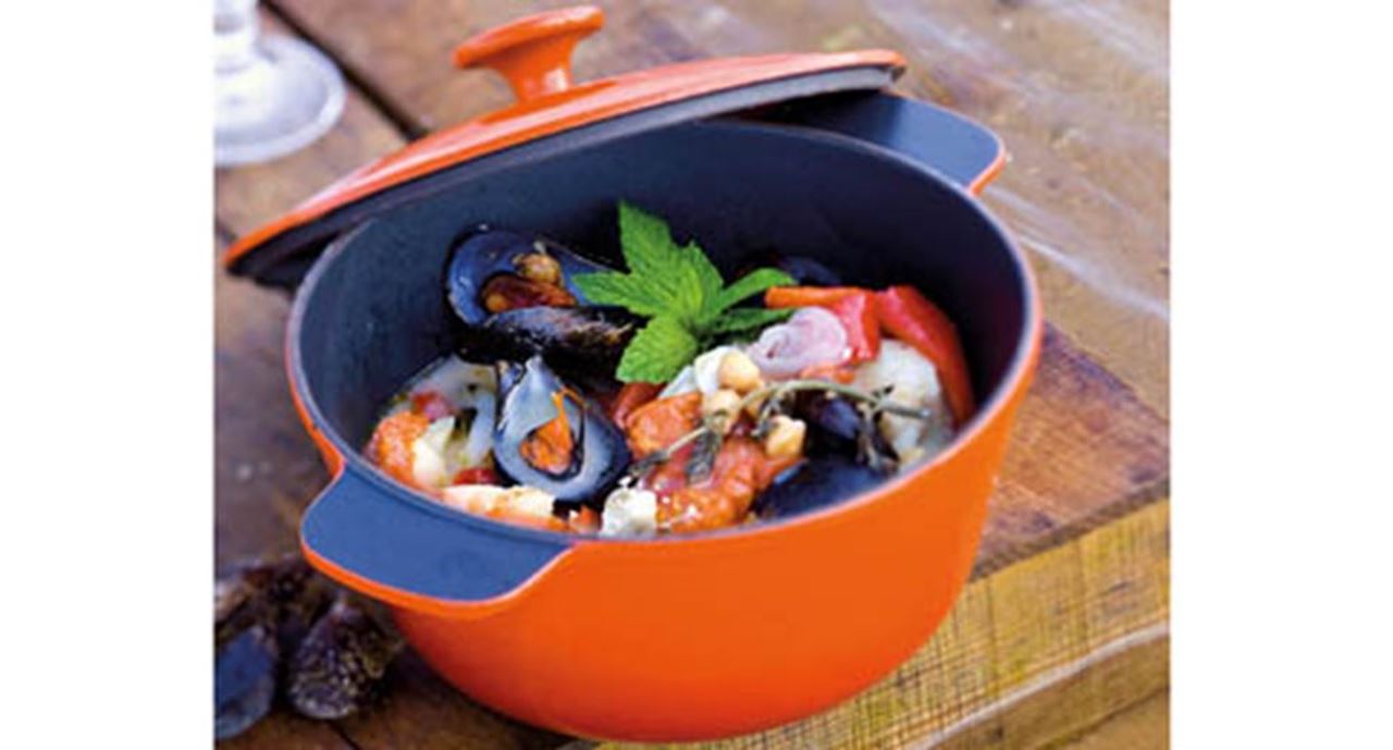 Caldeirada de bacalhau e grão com poejo e hortelã