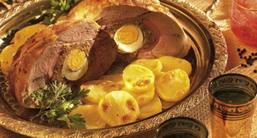 - Corte a perna de cordeiro em pedaços e leve a alourar numa caçarola com o restante azeite. Quando a carne estiver dourada de todos os lados junte as cebolas e os dentes de alho, descascados e picados, e deixe saltear mais um pouco. Tempere com sal e pimenta e regue com água quente de modo a cobrir completamente a carne. Tape e deixe cozer durante cerca de 40 minutos sobre lume moderado.
