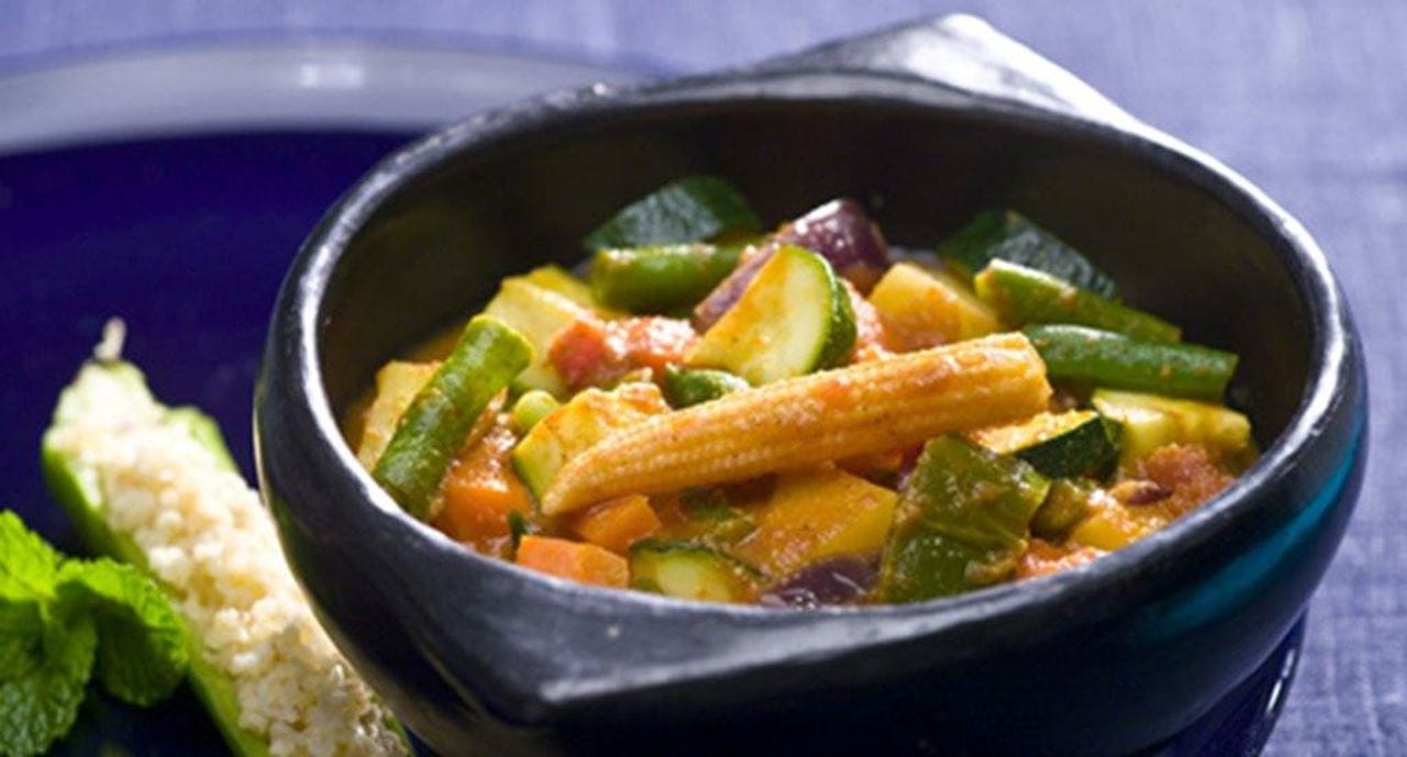 - Deite o bulgur numa taça, escalde-o com o chá e deixe hidratar tapado. Vá mexendo de vez em quando com um garfo de cozinha para soltar os grãos. Perfume com folhas de hortelã, picadas na altura, e sirva com o caril de legumes.