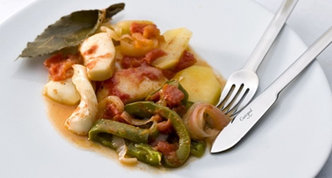 - Espalhe a cebola e o alho francês sobre o fundo da cataplana. Por cima espalhe a Vaqueiro Alho cortada em pedaços, as rodelas de batata, as tiras de choco, o tomate em cubos e o pimento em tiras. Junte o ramo de cheiros atado, tempere com sal e pimenta ou piripiri, feche a cataplana e leve a lume moderado entre 20 a 25 minutos. Acompanhe com salada de alface e rúcula.