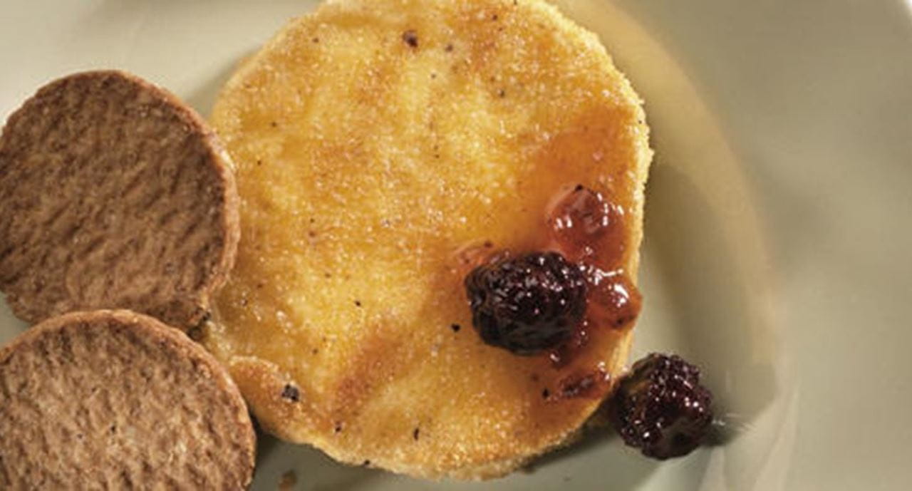 - Aqueça aVaqueiro Líquidanuma frigideira e frite as rodelas de chèvre, uma de cada vez, de ambos os lados, até estarem douradas. Acompanhe com as bolachas de aveia e doce defrutos silvestres.