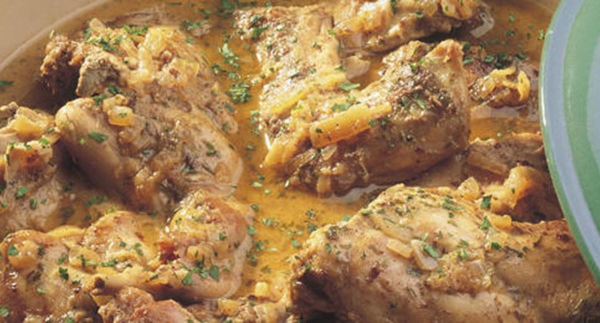 - Retire os pedaços de coelho com uma escumadeira e na mesma frigideira aloure a cebola cortada em rodelas finas. Regue com o vinho da marinada e tempere com sal. Junte o coelho, tape e deixe cozinhar sobre lume brando cerca de 30 minutos. Adicione as folhinhas de estragão cortadas em bocados e uma pitada de cravinho. Regue a pouco e pouco com as natas, mexendo. Rectifique o sal e a pimenta, tape e deixe cozinhar mais 20 minutos, sobre lume brando.