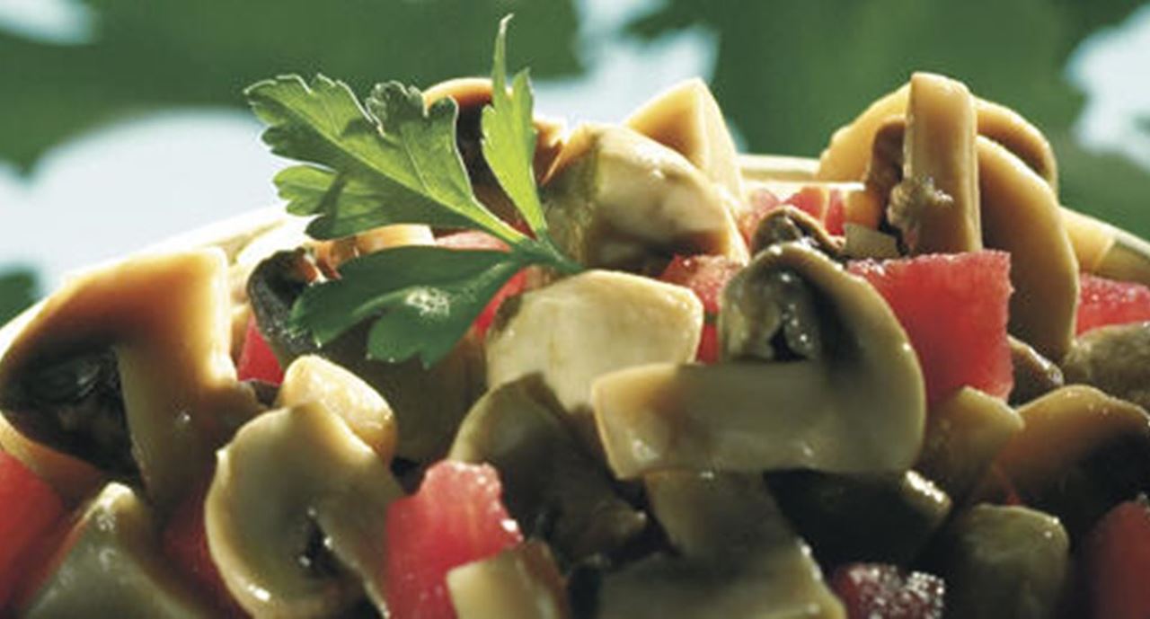 - Quando os cogumelos estiverem bem frios junte-lhes os cubinhos de tomate, polvilhe com pimenta preta, moída na altura, e enfeite com folhinhas de coentros frescos.
