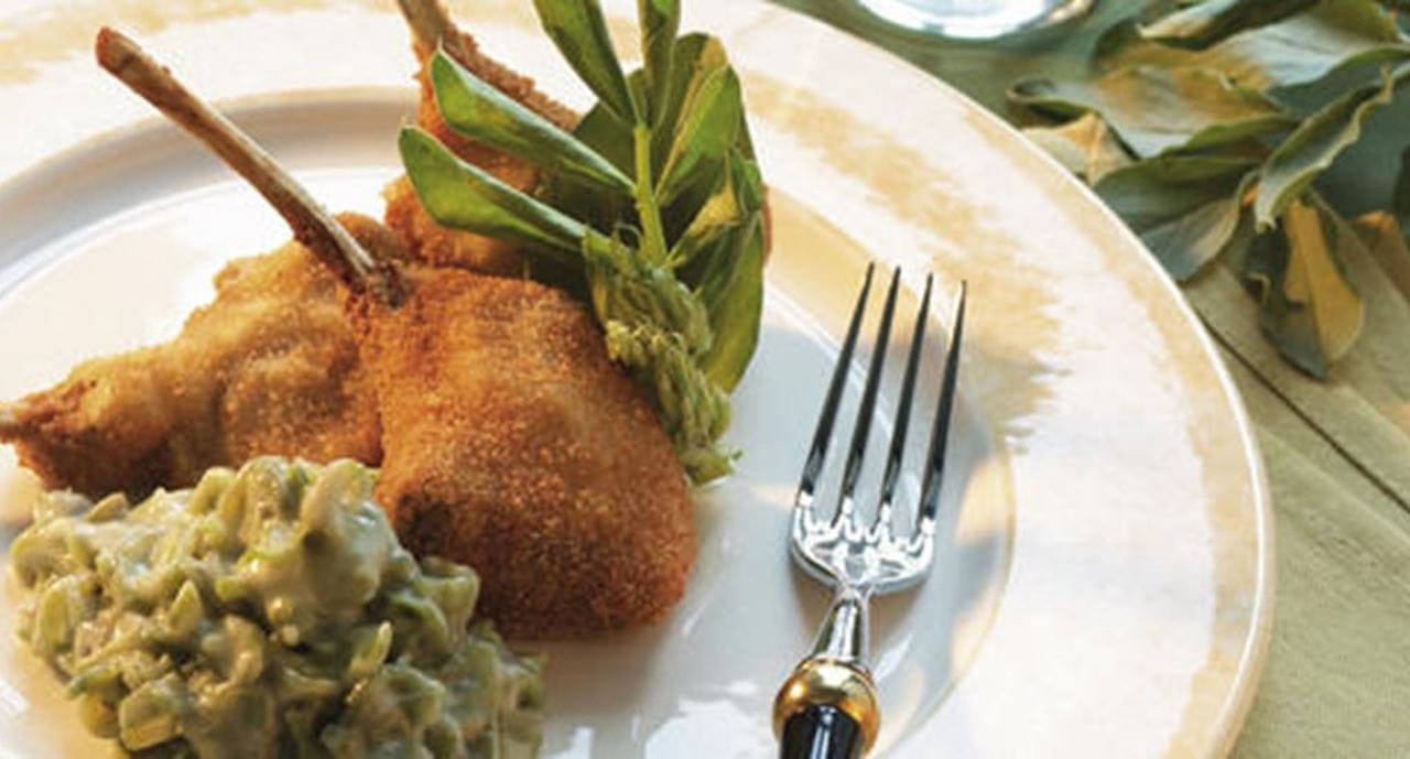 Para que o molho branco agarre melhor à carne, passe previamente as costeletas por farinha, sacudindo bem o excesso Para que fique mais espesso e seja mais fácil envolver as costeletas no molho béchamel este deverá estar frio.