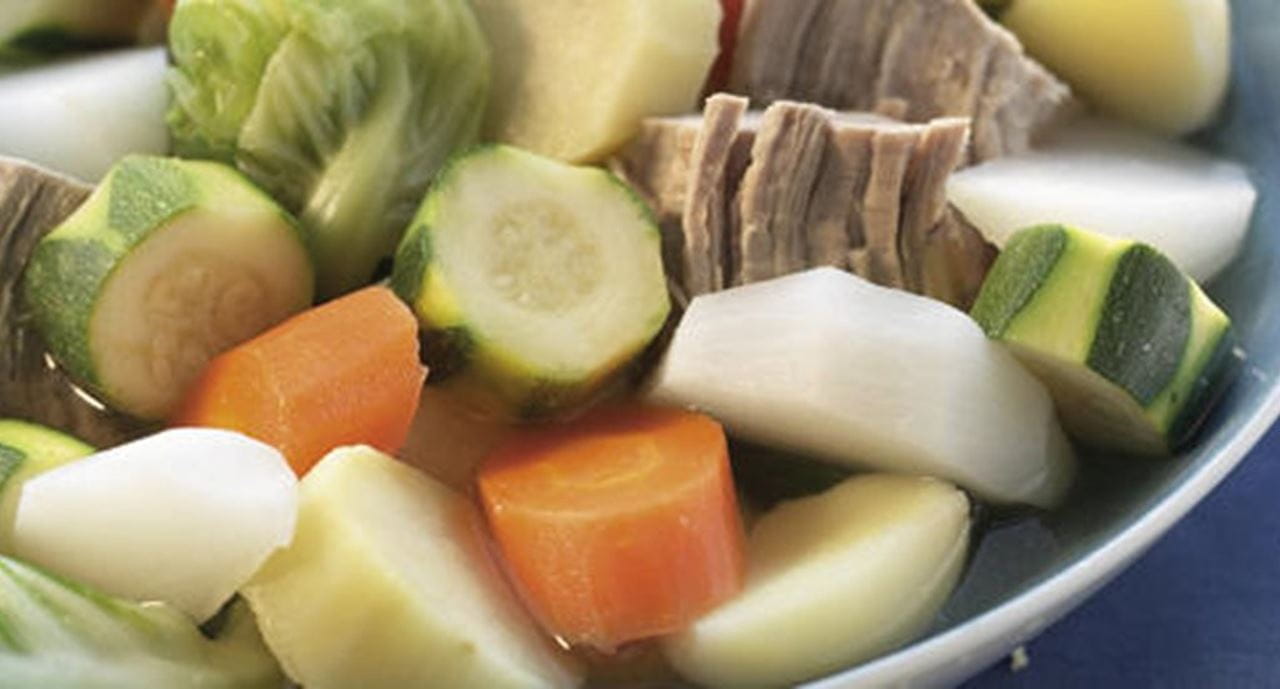 - Logo que os legumes e a carne estejam cozidos, retire-os com uma escumadeira e reserve-os num recipiente tapado para os manter quentes.
