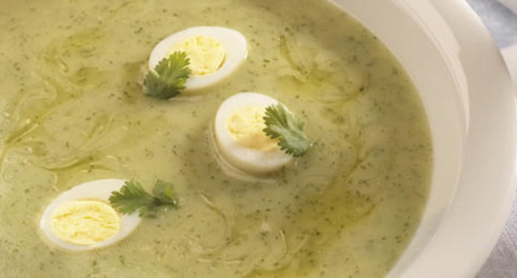 Creme de Coentros Frescos com Ovos de Codorniz