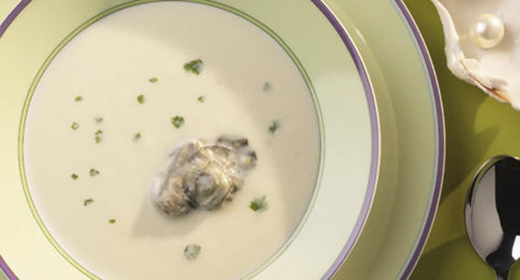 - Corte cada ostra ao meio e distribua as ostras por 6 pratos fundos. Cubra com o creme de couve-flor bem quente e polvilhe com pimenta moída na altura.