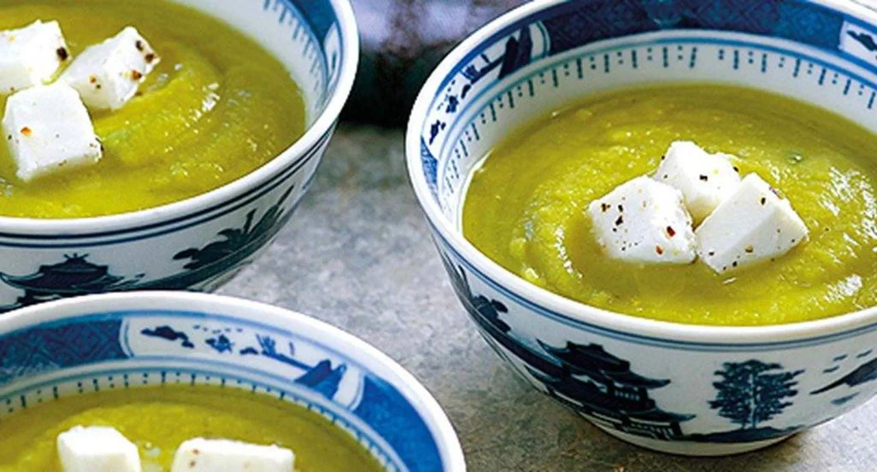 - Junte as folhas reservadas dos coentros à sopa, distribua pelos pratos de serviço e sirva com o queijo.