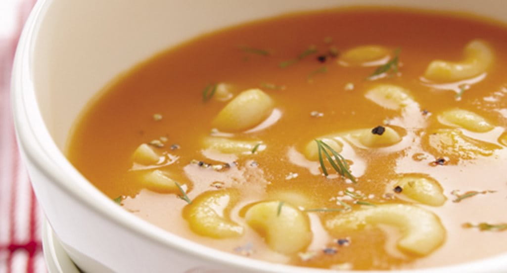 - Reduza a puré com a varinha mágica e quando retomar fervura adicione as massinhas. Mexa e deixe cozinhar mais 10 minutos.