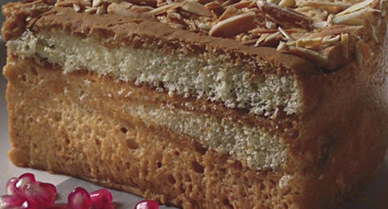 - Retire o aro da forma, coloque no prato de serviço e polvilhe com as amêndoas em falhas