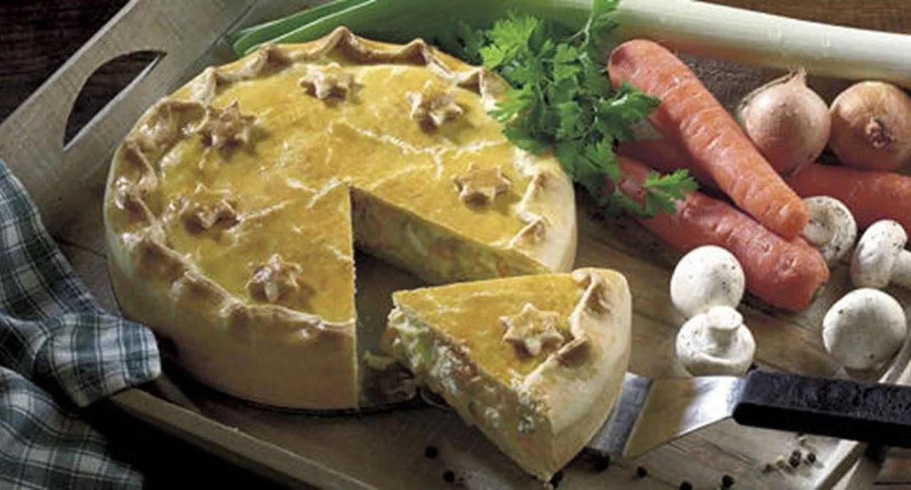 - Forre uma forma de tarte com o fundo móvel com um pouco mais de metade da massa, estendida com a ajuda do rolo da massa. Deite aí o recheio. Estenda a restante massa num círculo e coloque sobre o recheio. Faça aderir bem as bordas e decore a superfície com as aparas da massa que sobraram. Pincele com o ovo batido e coza em forno moderado (200º C) durante cerca de 30 minutos.