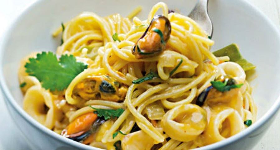 - Escorra o esparguete introduza-o no molho mexe e salpique generosamente com coentros.
