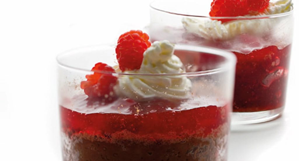 Fofo de chocolate no copo com framboesas
