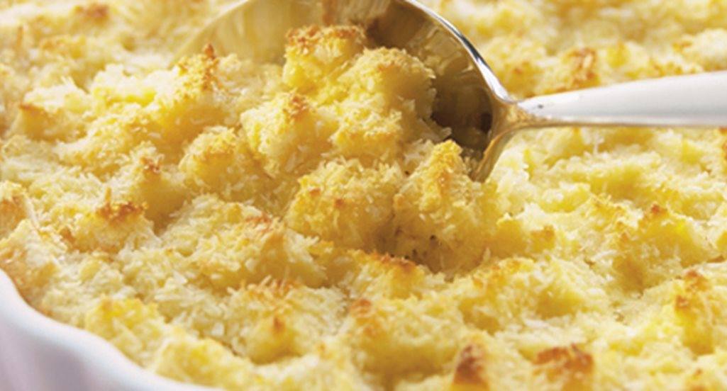 - Deite o preparado sobre o pão, polvilhe com coco ralado e leve ao forno durante cerca de 20 minutos.