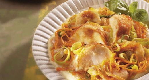- Separe, lave e enxugue muito bem as folhas de chicória e de alface. Ripe as folhas e distribua-as pelos pratos de serviço.