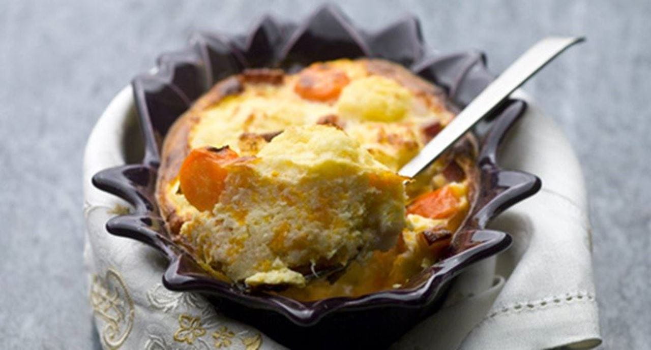 - Parta os ovos para uma tigela e bata-os com uma vara de arames até estarem desfeitos.Junte o molho béchamel Vaqueiro, metade do queijo ralado. Misture bem.