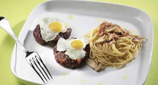 - Coloque a carne numa tigela, junte-lhe a cebola e os picles picados. Tempere com a mostarda, sal e pimenta acabada de moer. Adicione a salsa picada e o pão ralado e misture muito bem.