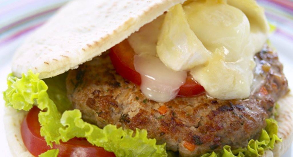 - Na mesma frigideira aloure rapidamente as rodelas de chèvre de ambos os lados e coloque-as sobre os hambúrgueres. Cubra com as restantes metades de pão.