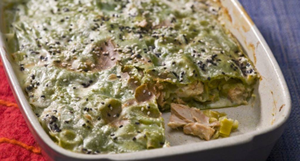 - Ligue o forno e regule-o para os 180 °C Tempere o salmão com sal, pimenta moída na altura, raspa da casca e sumo de limão. Corte o alho francês em rodelas, lave em água corrente e escorra bem. Descasque as chalotas e pique-as finamente. Deite a Vaqueiro num tacho e leve a derreter sobre lume moderado. Junte o alho francês e as chalotas e deixe cozinhar sobre lume moderado até começarem a alourar. Introduza os lombos de salmão, tape e deixe suar suavemente. Entretanto lave a courgette, elimine as extremidades e rale em fios. Junte a courgette ao salmão e deixe cozinhar até tapado e sobre lume brando cerca de 5 minutos ou até conseguir desfazer o salmão em lascas. Pincele um tabuleiro de louça com Vaqueiro Liquida e espalhe um pouco de molho béchamel sobre o fundo. Cubra com placas da lasanha de rúcula e por cima espalhe parte do recheio de salmão. Cubra com uma camada de molho béchamel e volte a repetir as camadas até esgotar os ingredientes. Termine com uma camada de placas de lasanha, cobertas com uma camada de molho béchamel. Salpique com sementes de sésamo e leve ao forno durante cerca de 25 minutos.