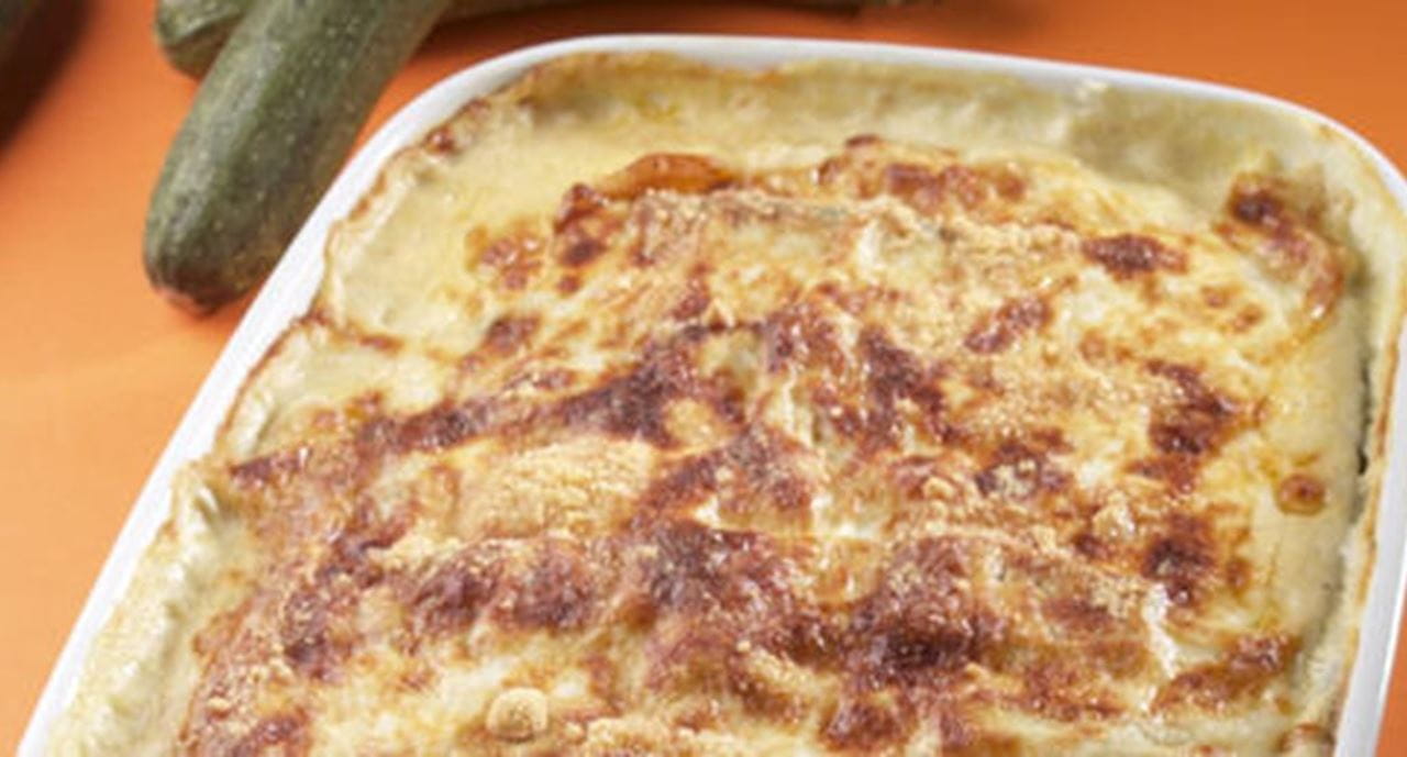 - Termine regando com molho béchamel, polvilhe com queijo parmesão ralado e leve a gratinar em forno moderado (220 °C) durante cerca de 30 minutos.