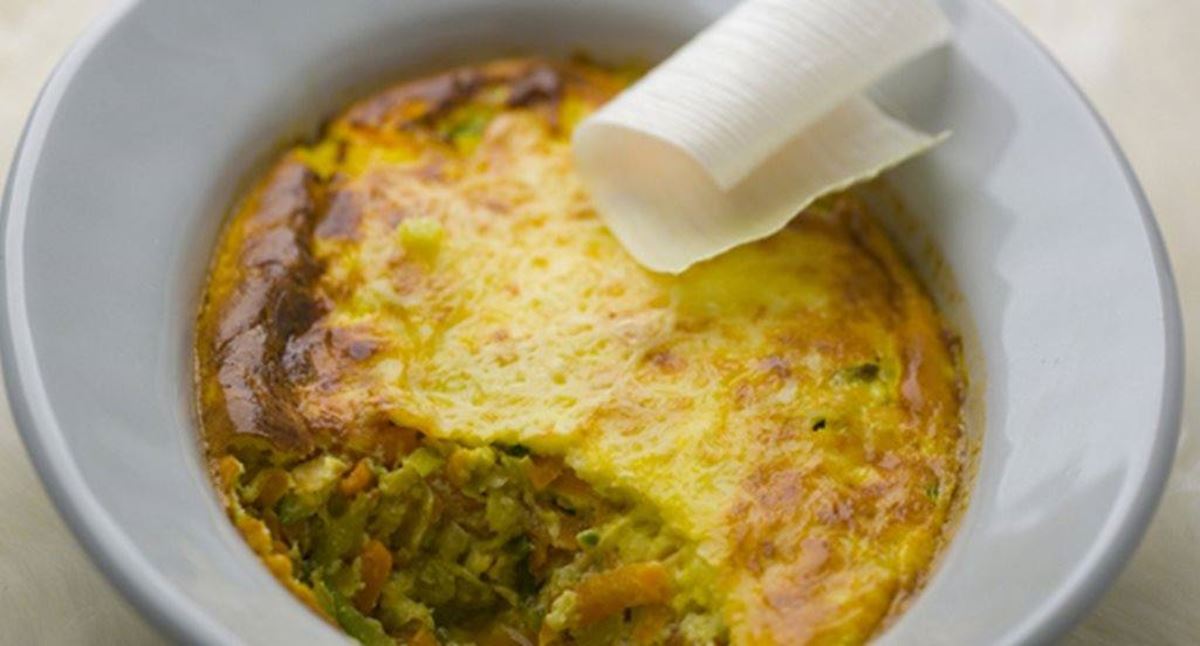 - Espalhe os legumes sobre uma tarteira de louça e por cima deite a mistura de ovos e natas. Salpique com o queijo ralado e leve ao forno entre 20 a 25 minutos.